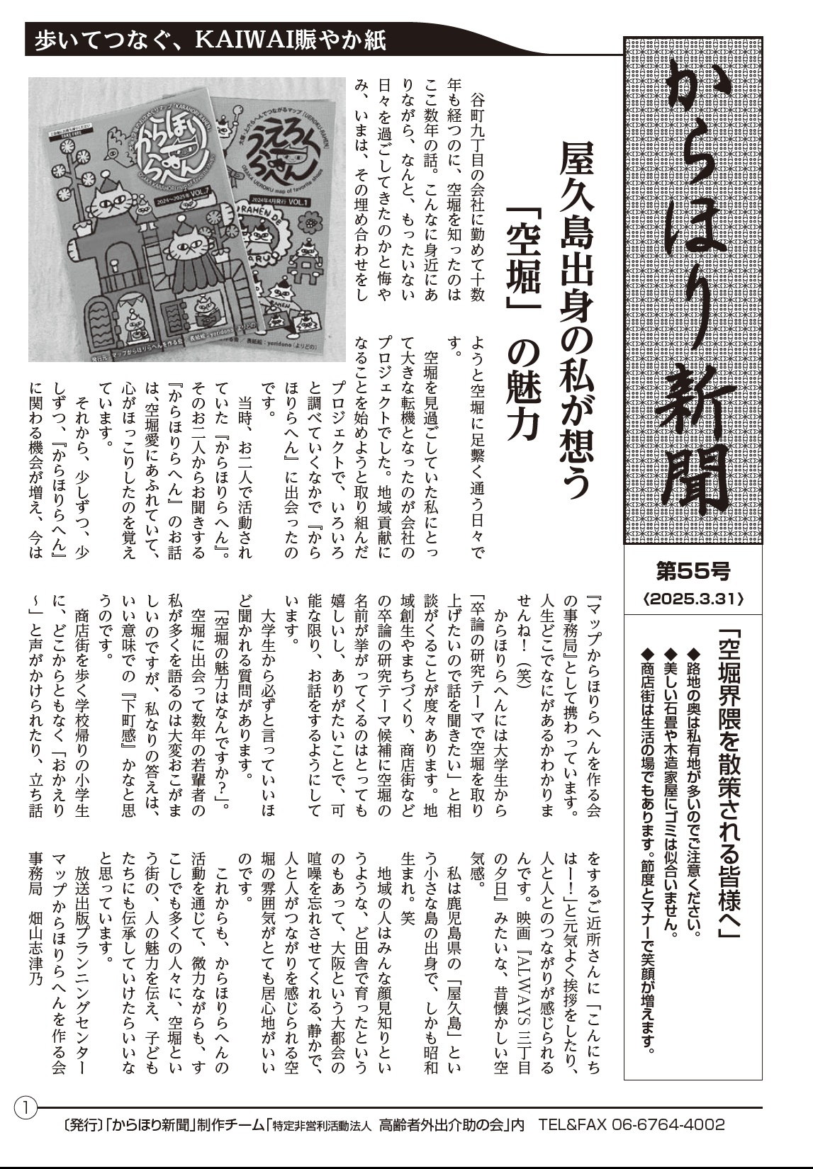 (からほり新聞 第55号「屋久島出身の私が想う空堀の魅力」放送出版プランニングセンター『マップからほりらへんを作る会事務局』畑山志津乃さん)